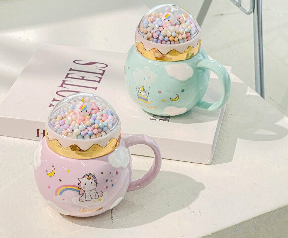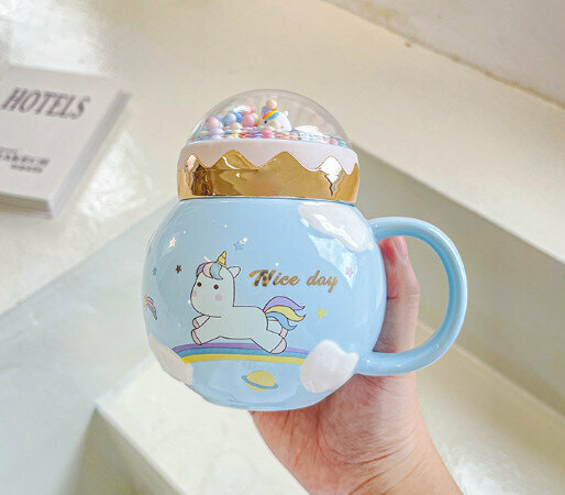 新款陶瓷水杯【401-500ml】【藍色】