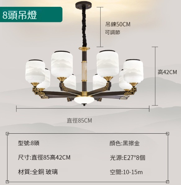 新款吊燈【全銅玉石-15頭三色變光】