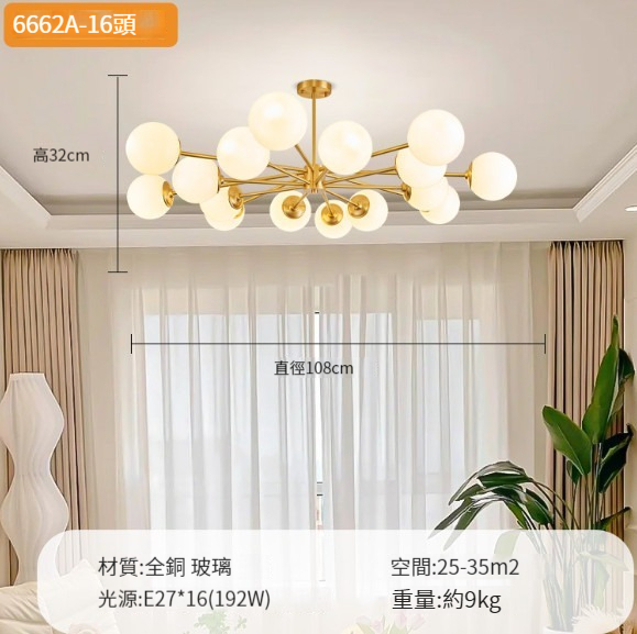 新款吊燈【全銅魔豆8+4頭-三色變光】