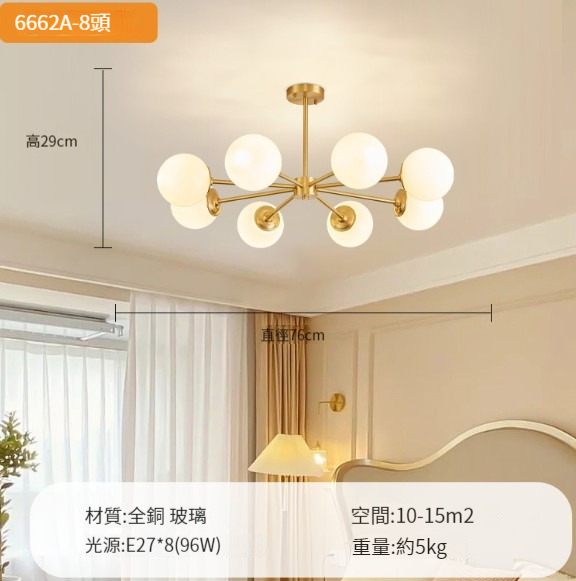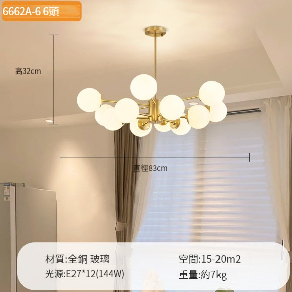 新款吊燈【全銅魔豆8+4頭-三色變光(磨砂款)】
