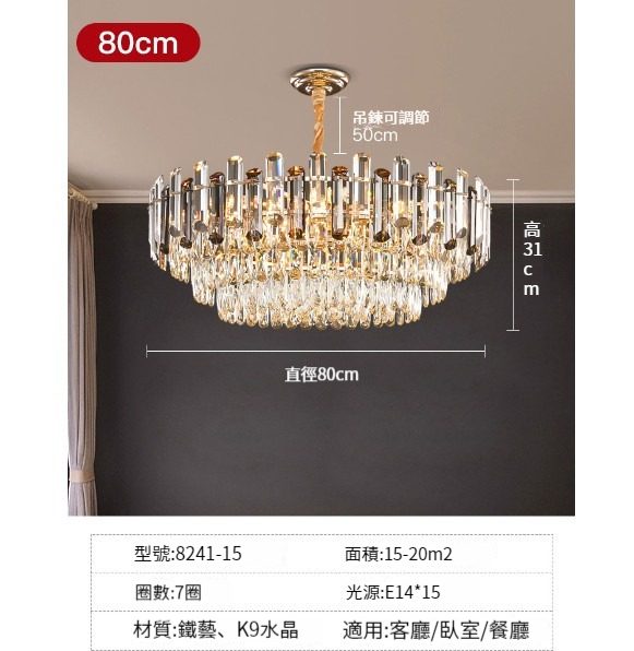 新款吊燈【圓形95CM(8層K9水晶)】