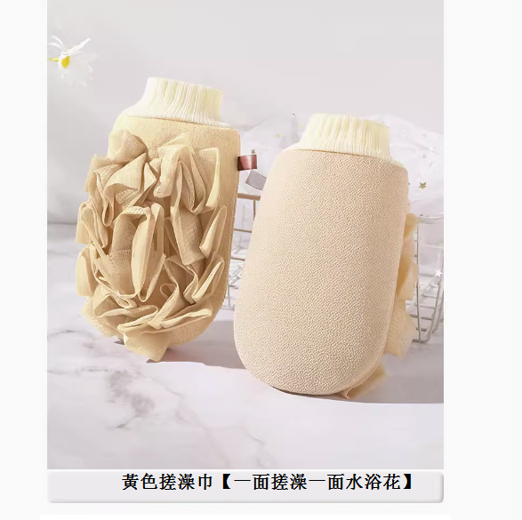 新款兒童搓澡巾(黃色雙面搓澡巾【一面浴花 一面搓澡】)