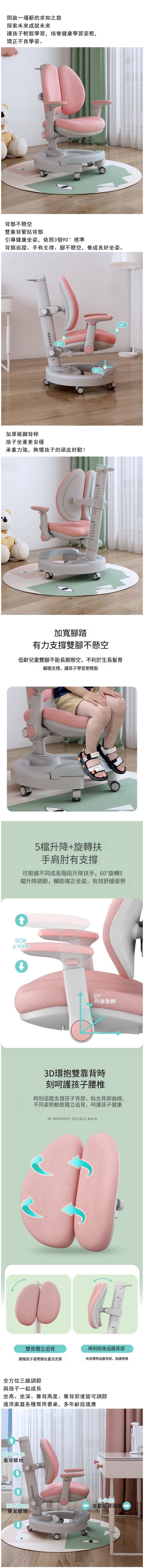 新款兒童學習椅矯正坐姿座椅可調節升降靠背椅 (藍色)