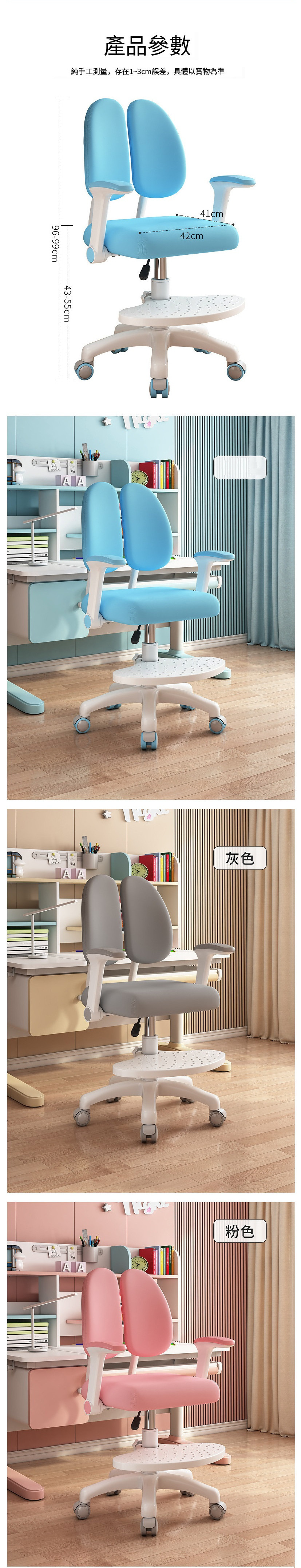 新款兒童學習椅矯正坐姿座椅(3D環繞靠背+乳膠坐墊+旋轉扶手)(藍色)