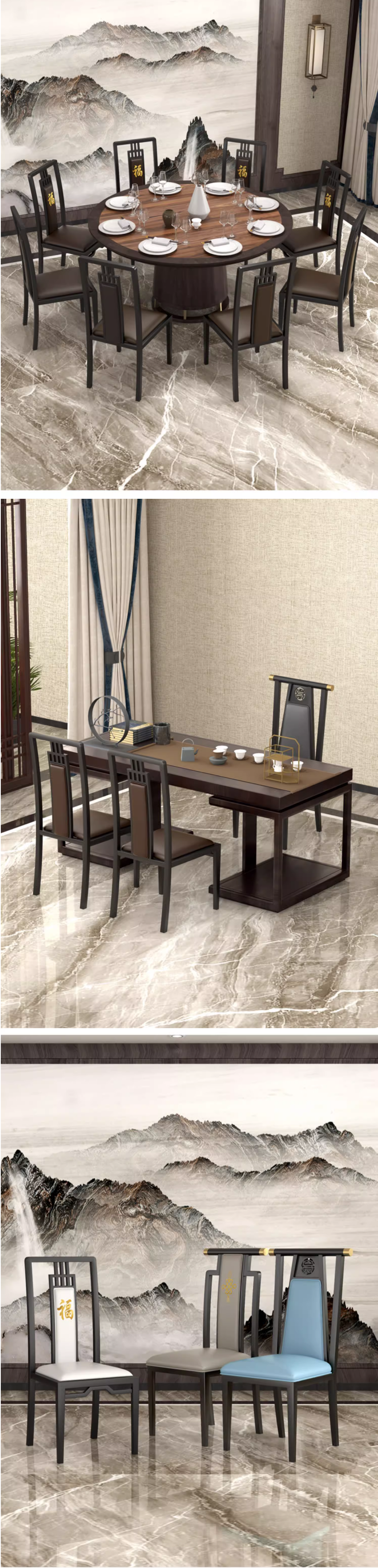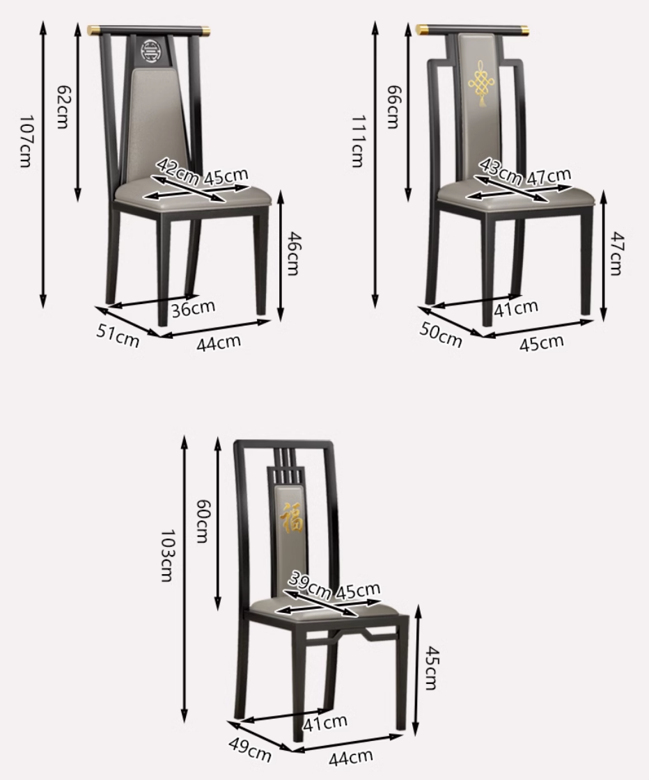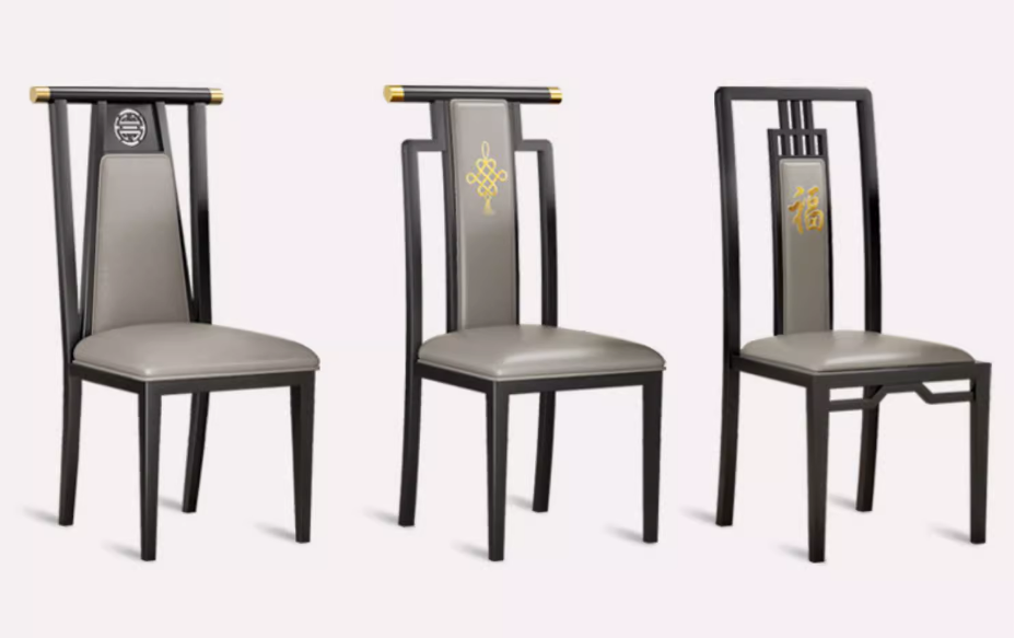新款中式古典鐵藝靠背餐椅(i款*黑架藍皮革)(尺寸:44*49*103CM)