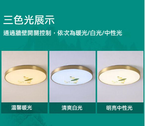 新款中式圓形led吸頂燈(銅本色梅花-直徑30cm)【LED三色變光】