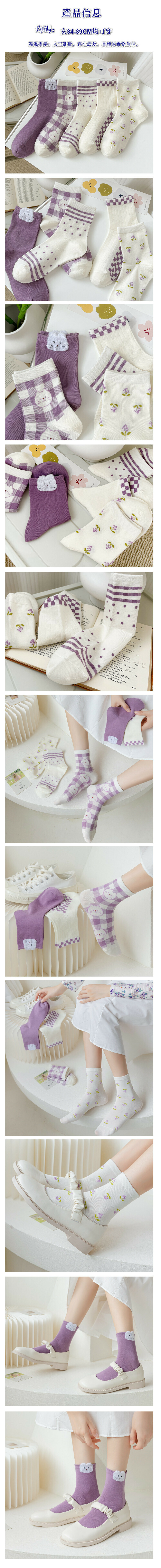 新款學院風簡約運動女棉襪 中筒襪【腳底格子】【均碼】