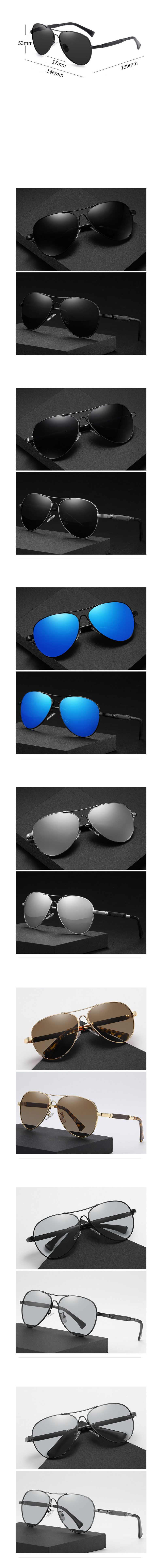 新款變色太陽鏡男士記憶框飛行員偏光墨鏡駕駛開車司機鏡(裸鏡無LOGO 槍框+偏光變色片)