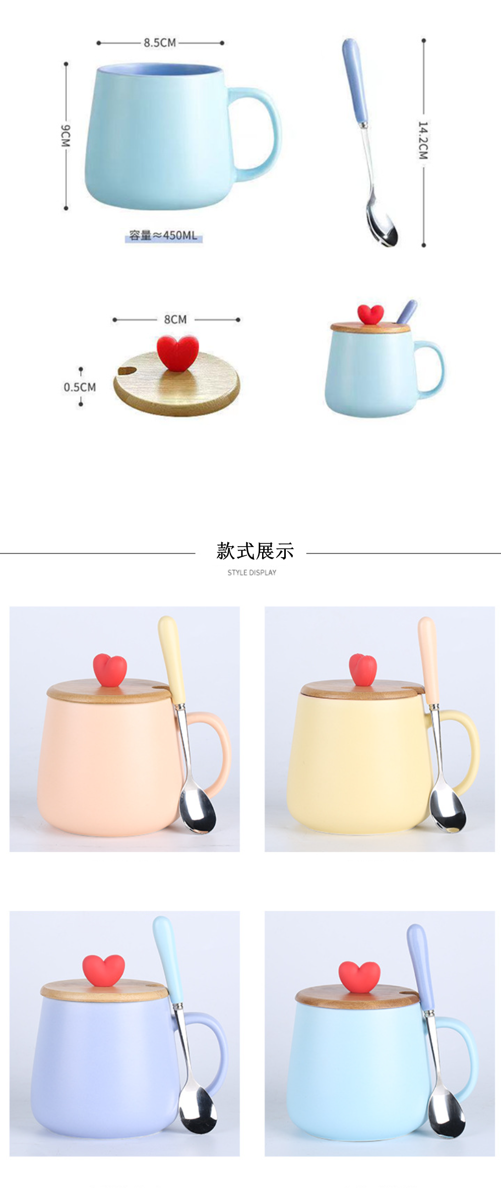 新款色釉陶瓷杯 創意情侶馬克水杯(內橙外黃-杯+勺+蓋【1套】)