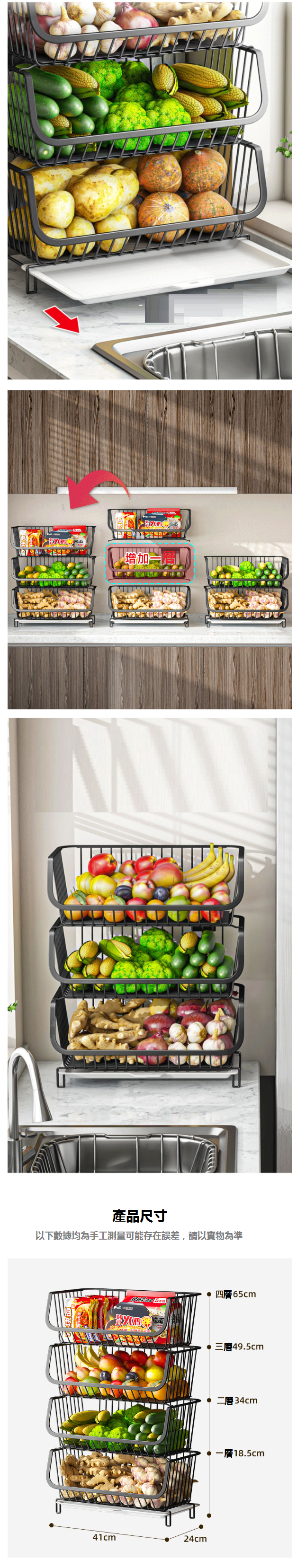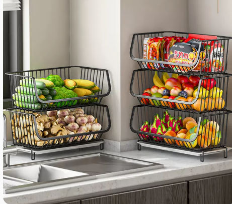 新款檯面菜籃子收納架(C款三角蔬菜籃三層)