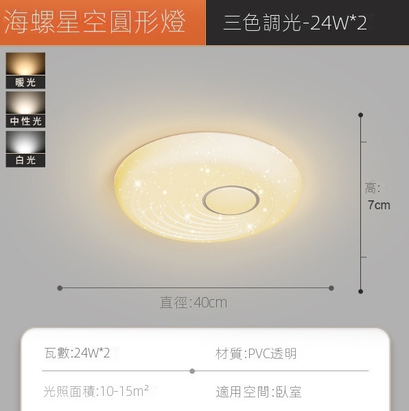 新款奶油風吸頂燈(普通光源-吸頂星空-50cm【RA85左右】)【LED三色變光】