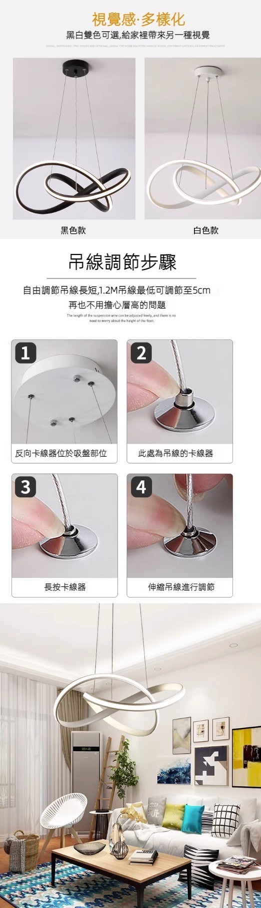 新款創意線條LED吊燈(黑色大號直徑68cm/無極調光)