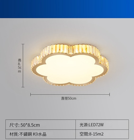 新款水晶吸頂燈【50CM-三色調光】【K9水晶高透光+不銹鋼燈體】