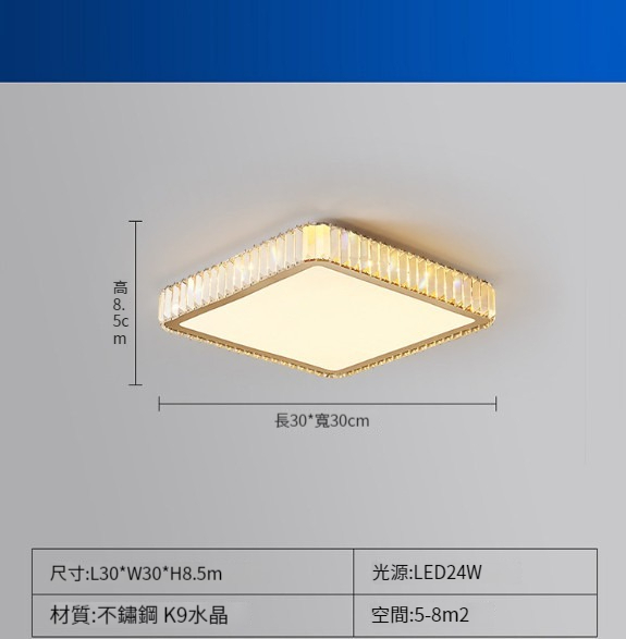 新款水晶吸頂燈【60CM-三色調光】【K9水晶高透光+不銹鋼燈體】