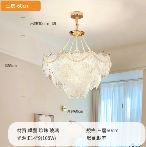 新款水晶吊燈【G款側掛珠-圓50cm三層】