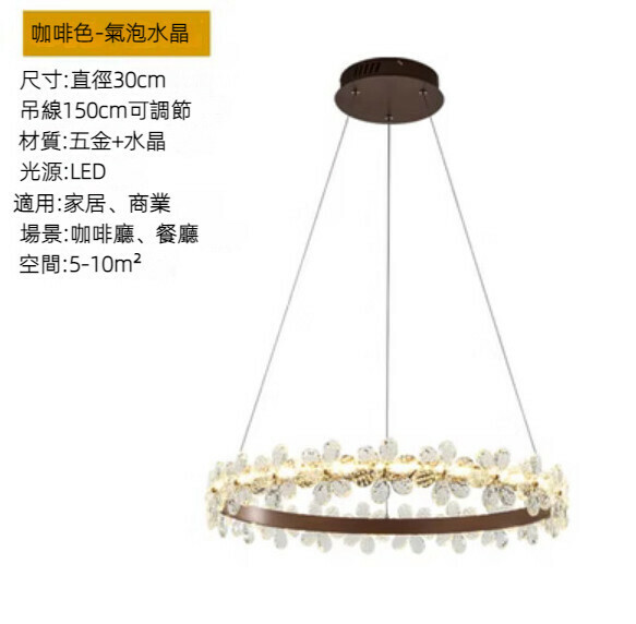 新款水晶花圓環吊燈(咖啡色30cm單層-三色變光)