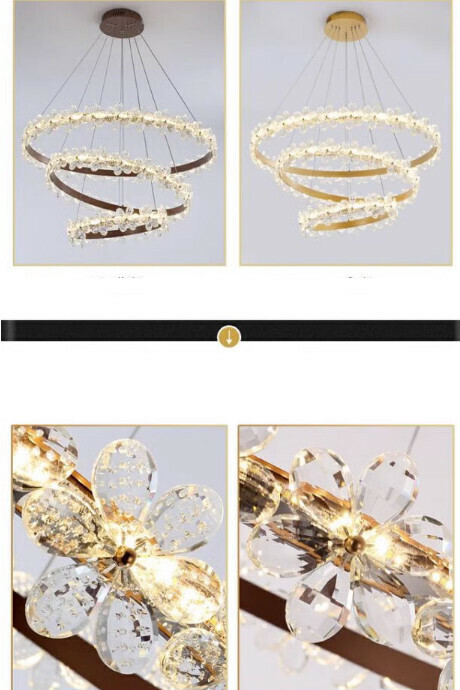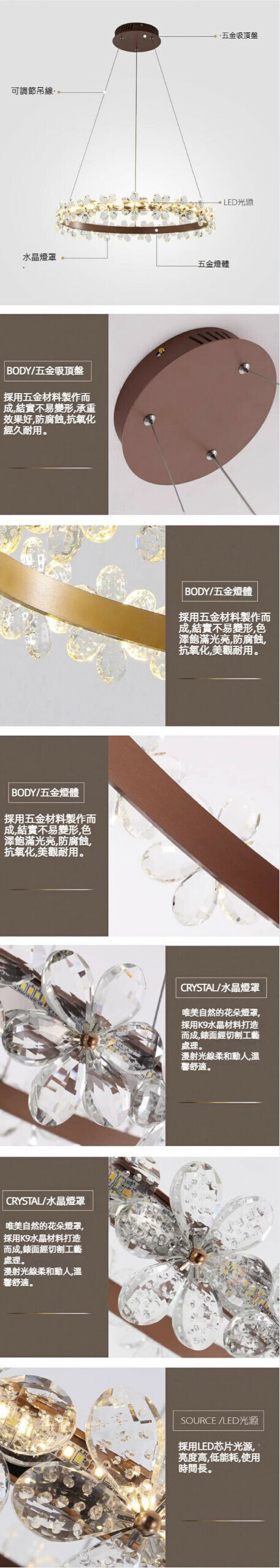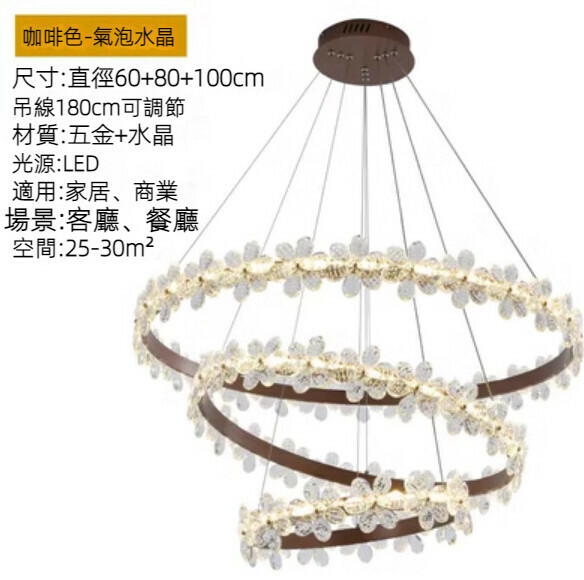 新款水晶花圓環吊燈(咖啡色60+80+100三層-三色變光)