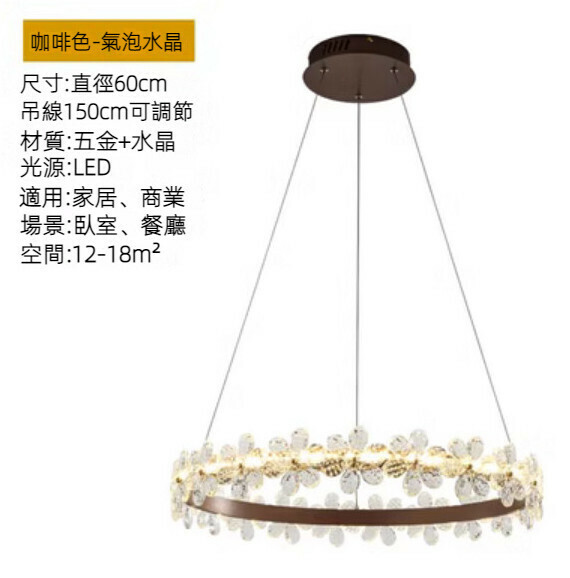 新款水晶花圓環吊燈(咖啡色60cm單層-三色變光)