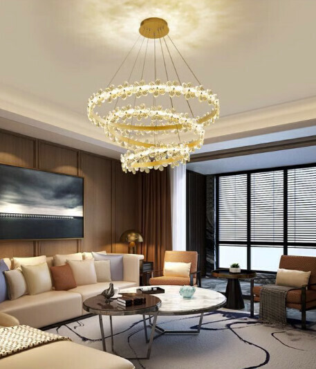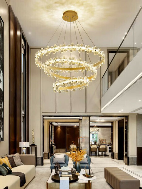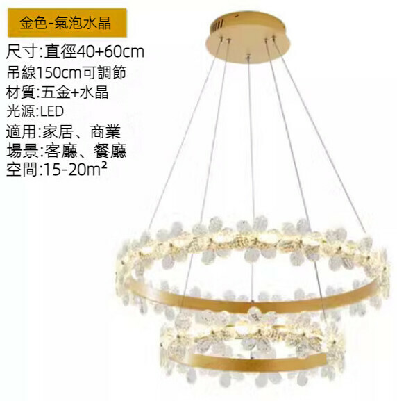 新款水晶花圓環吊燈(金色40+60cm雙層-三色變光)