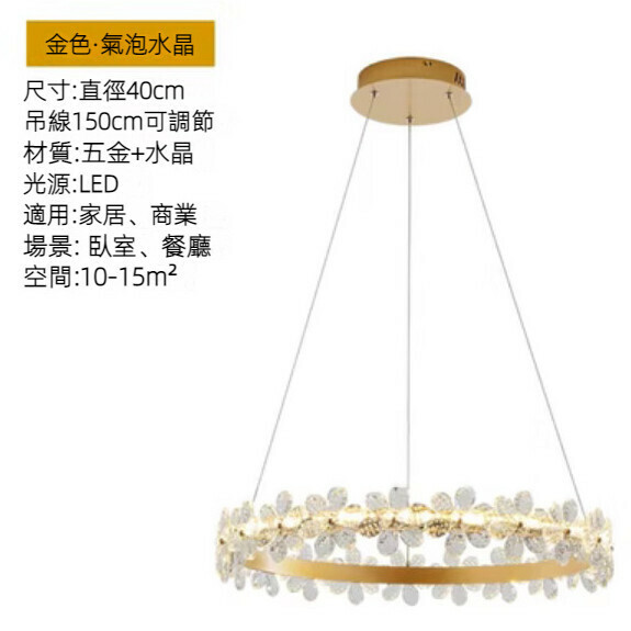 新款水晶花圓環吊燈(金色40cm單層-三色變光)