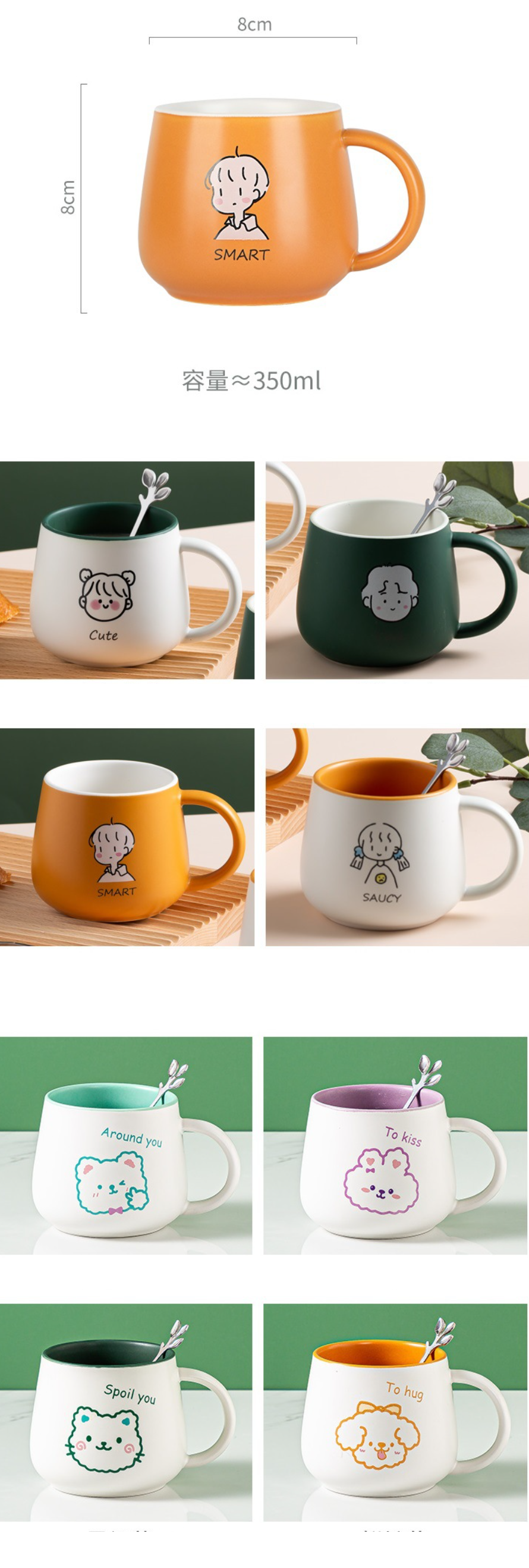 新款可愛陶瓷馬克杯350ml(內白外橙-聰明男孩)