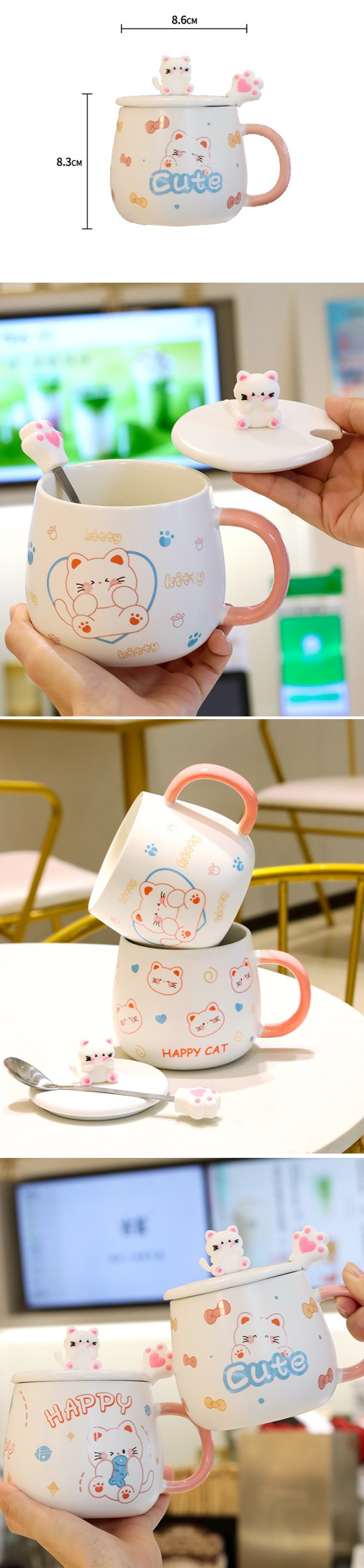 新款帶蓋可愛少女心馬克杯500ml(偷腥貓+陶瓷蓋+貓爪勺)