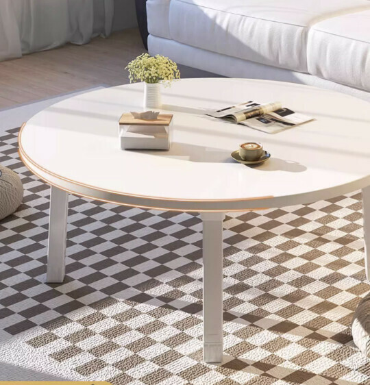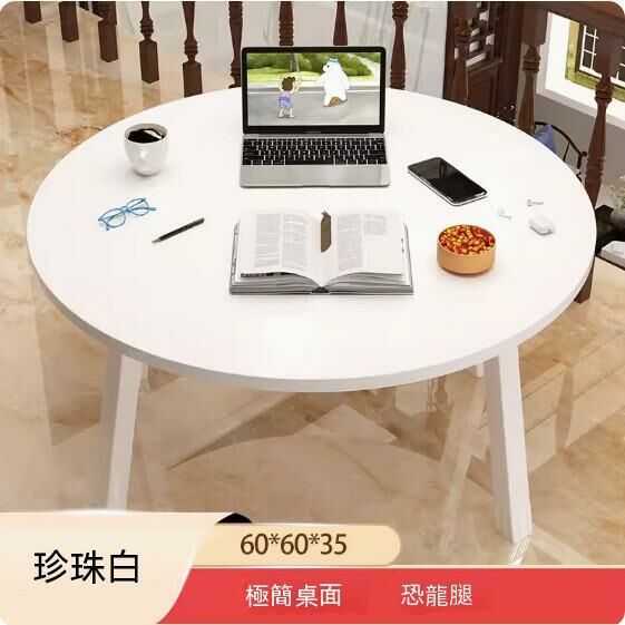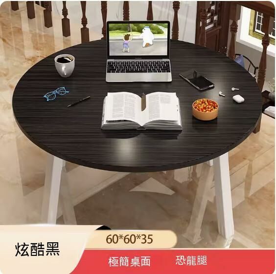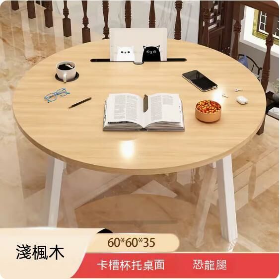 新款密度板可折疊茶几(原木色-圓形恐龍腿)【尺寸:60*60*35cm】