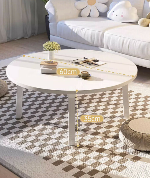 新款密度板可折疊茶几(原木色-圓形大象腿)【尺寸:60*60*29cm】