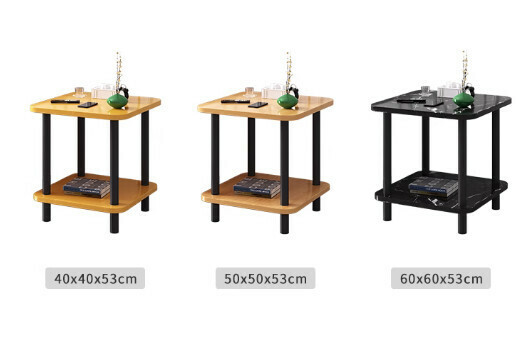 新款密度板簡約雙層黑腿茶几(黑石紋)【尺寸:60*60*53cm】