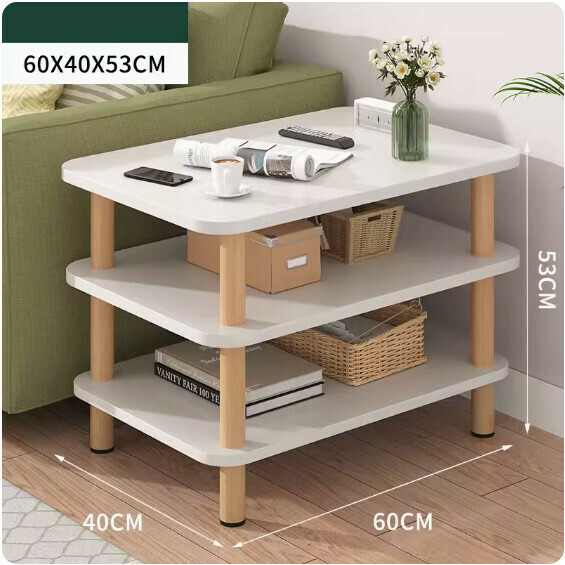 新款密度板簡約迷你小茶几(原木色-三層款)【尺寸:60*40*53cm】