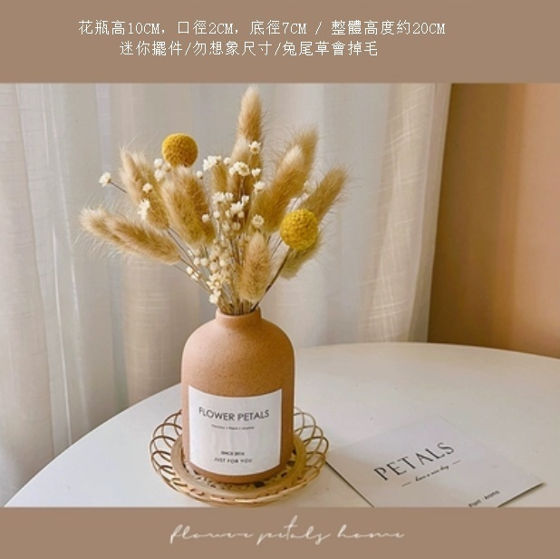 新款沙漠系列迷你幹花花束(卡其色mini花瓶 兔尾花)