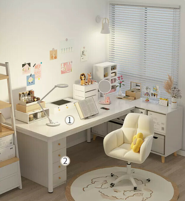 新款書桌書架一體辦公桌子(優雅白單桌100*50CM+雨絲銀橡木色置物架95*20*98CM)