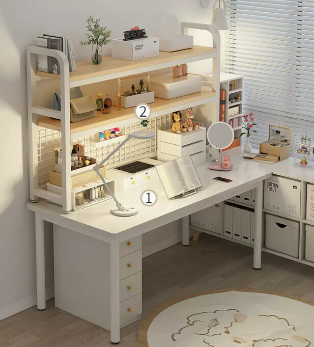新款書桌書架一體辦公桌子(優雅白單桌100*60CM+雨絲銀橡木色置物架95*20*98CM)
