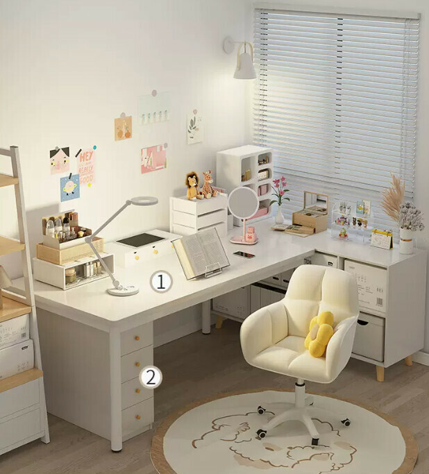 新款書桌書架一體辦公桌子(優雅白單桌+鬥櫃100*50CCM)