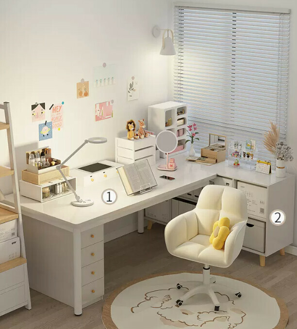 新款書桌書架一體辦公桌子(優雅白單桌+八格櫃140*60CM)