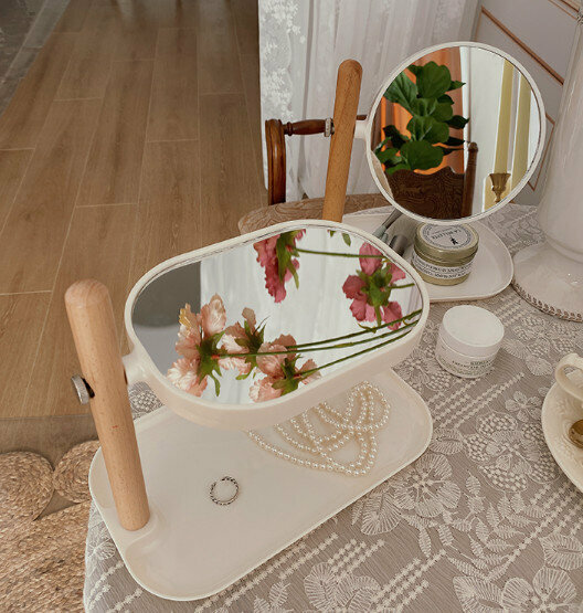 新款桌面臺式化妝鏡(帶托盤-圓形白色)
