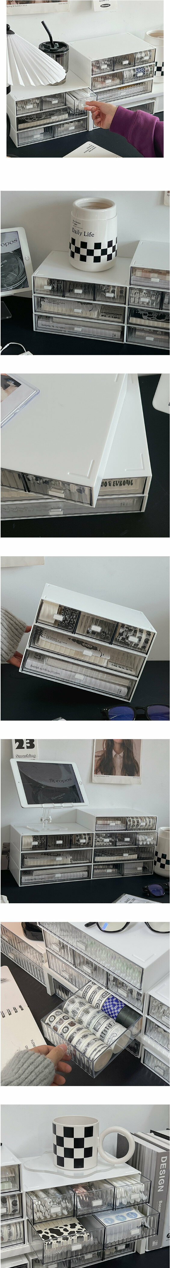 新款桌面抽屜式收納盒(條紋白色一層兩抽)