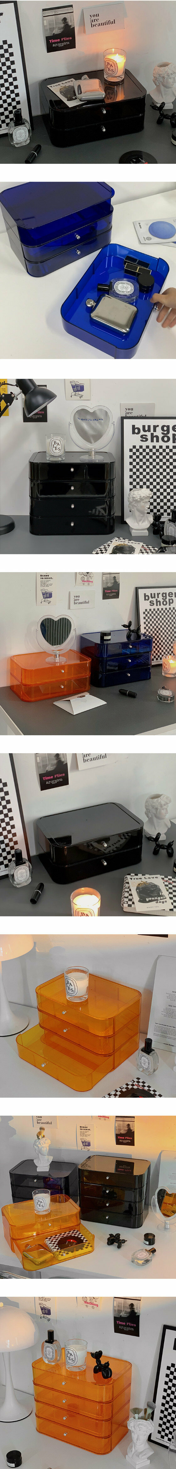 新款桌面抽屜式化妝品收納盒化妝盒化妝箱(透藍四層)