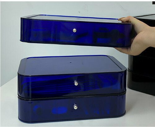 新款桌面抽屜式化妝品收納盒化妝盒化妝箱(透灰二層)
