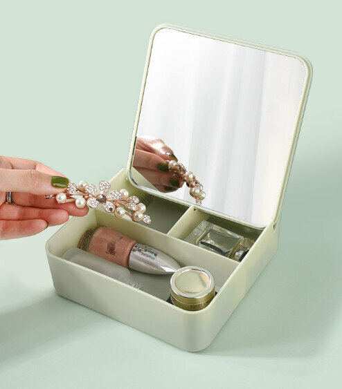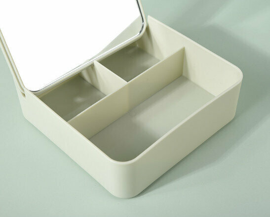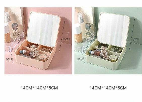 新款桌面家用小型一體化妝鏡收納盒(北歐粉-三格款)