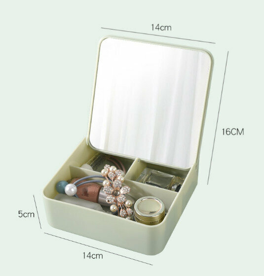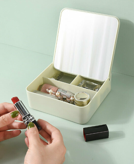 新款桌面家用小型一體化妝鏡收納盒(粉色-六格款)
