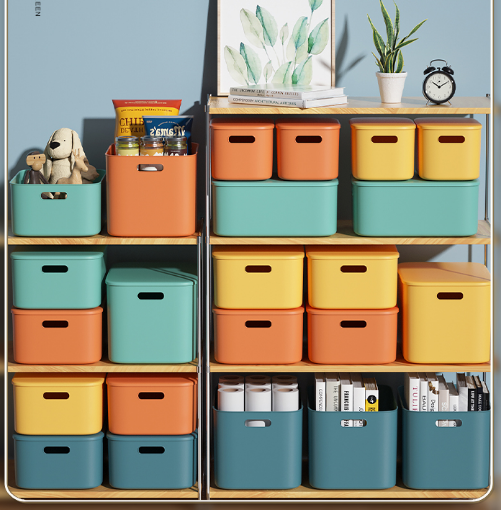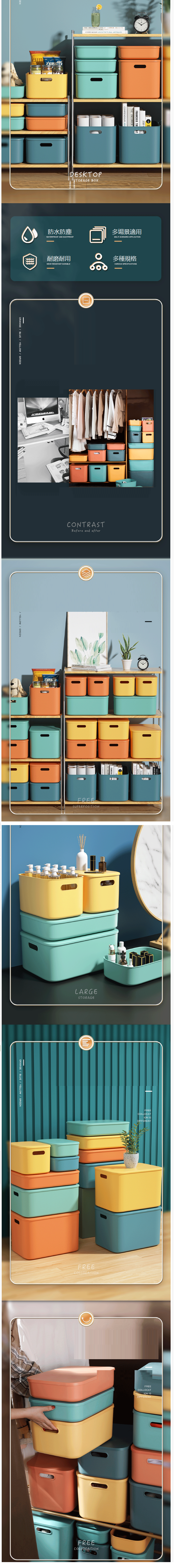 新款桌面帶蓋塑料長方形收納盒(淺款-小號暮色橘)
