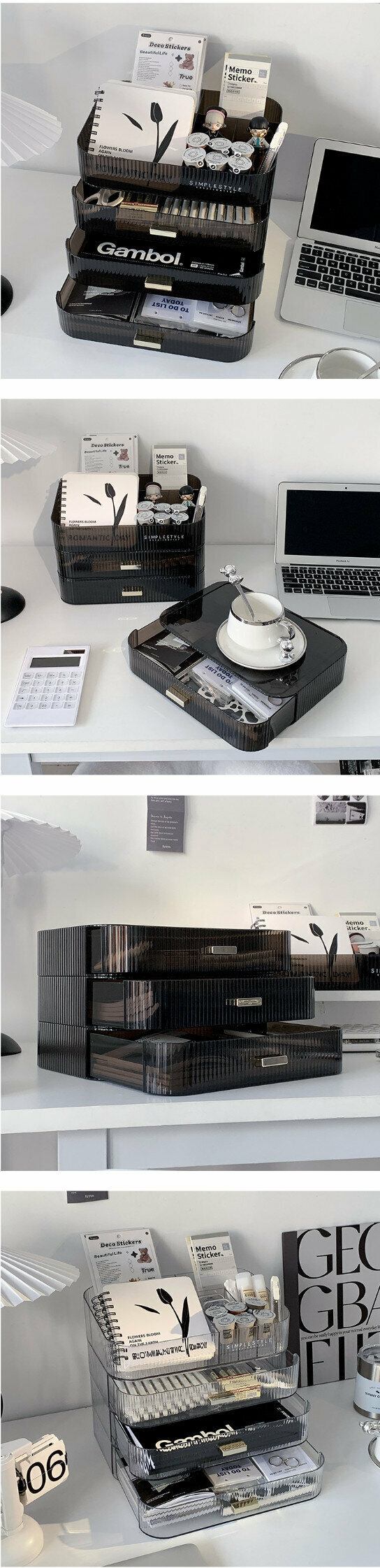 新款桌面雜物抽屜式收納盒(透明-分格頂格+透明-抽屜*1)