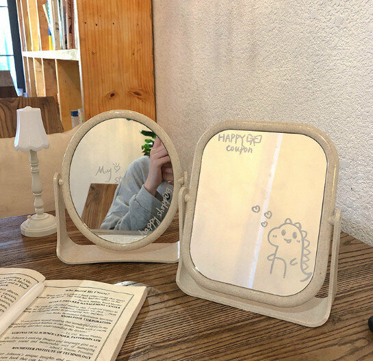 新款桌面臺式梳妝鏡(粉色橢圓形)