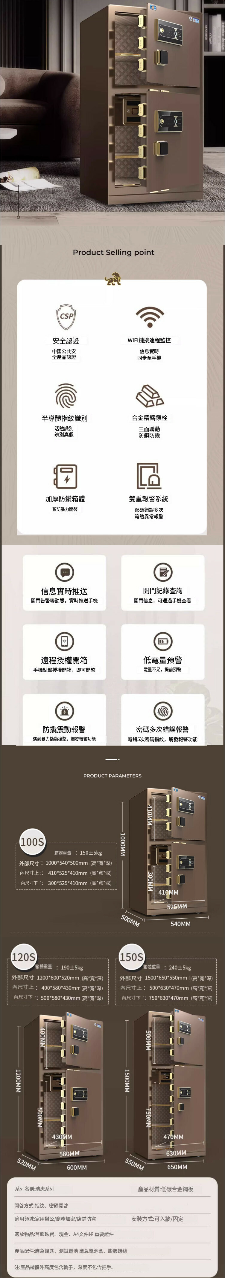 新款雙門指紋辦公夾萬(CSP安全認證-1.5米雙門咖啡色(WiFi款)+遠程授權)