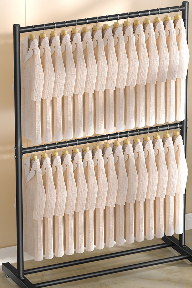 新款雙層簡易落地掛衣架(黑色)(尺寸:長60寬40高185CM)