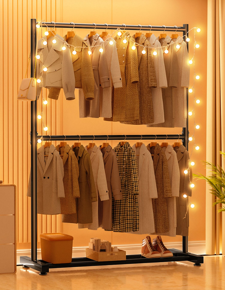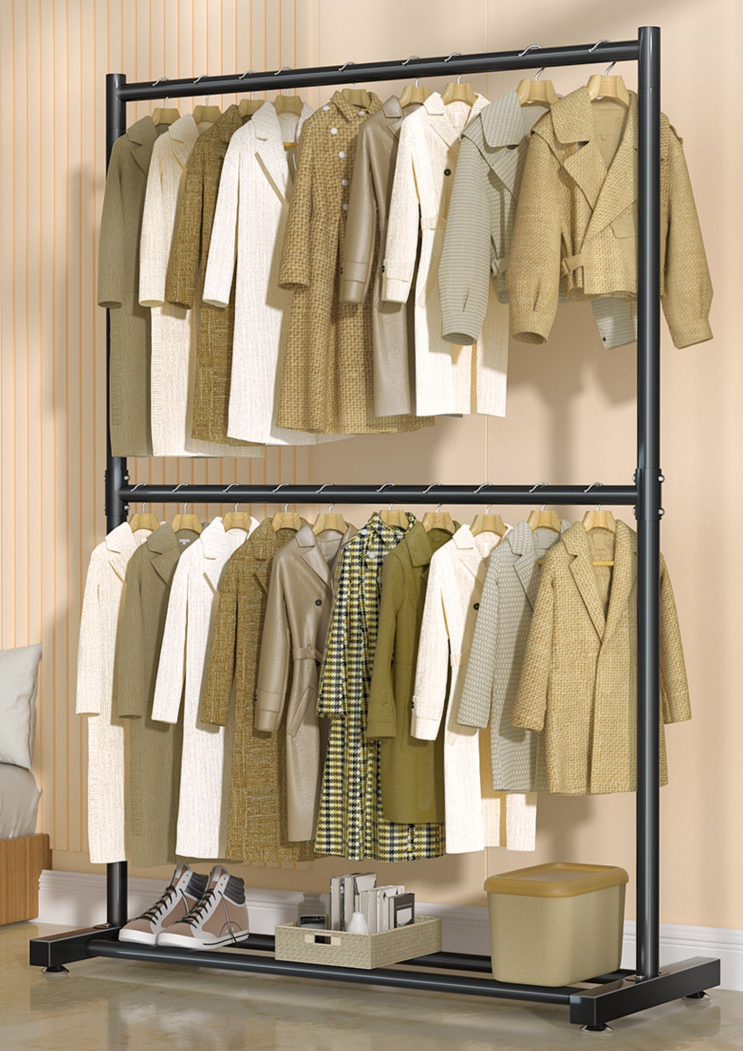 新款雙層簡易落地掛衣架(黑色)(尺寸:長80寬40高185CM)
