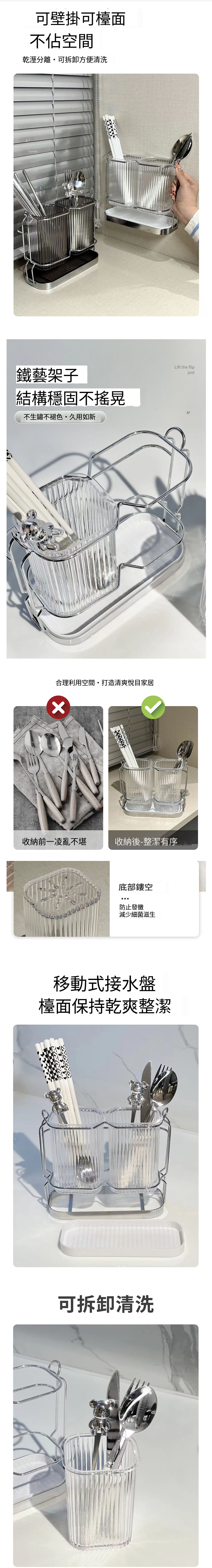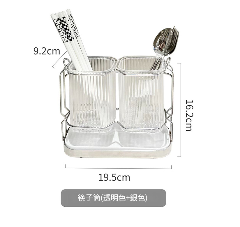 新款瀝水筷子筒壁掛防霉廚房勺子收納盒置物架(銀色+透明色)