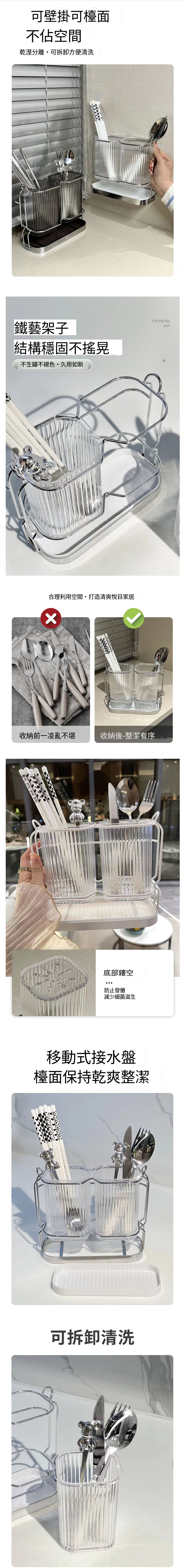 新款瀝水筷子筒壁掛防霉廚房勺子收納盒置物架(白色+透明色)