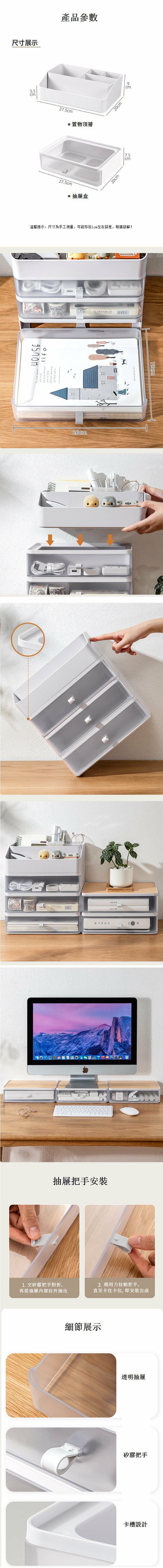 新款抽屜式桌面收納盒【(三層)白色+木質頂板】